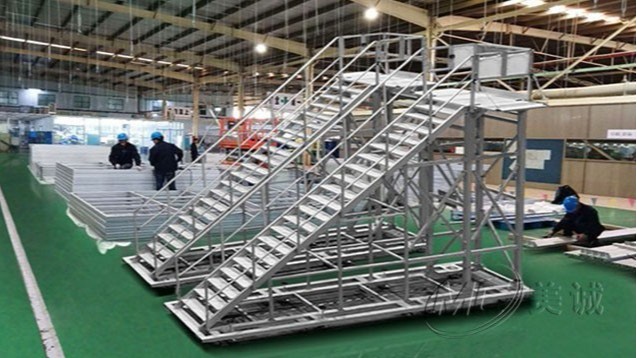 踏步工業(yè)梯由專用工業(yè)鋁型材作為框架,其需求根據(jù)客戶制定進行免費設(shè)計、切割加工,配件連接而組成,其中塔臺部分運用了防滑鋁板,可以起到很好的保護作用,底部使用金屬蹄角做支撐,扶手為圓管鋁合金。